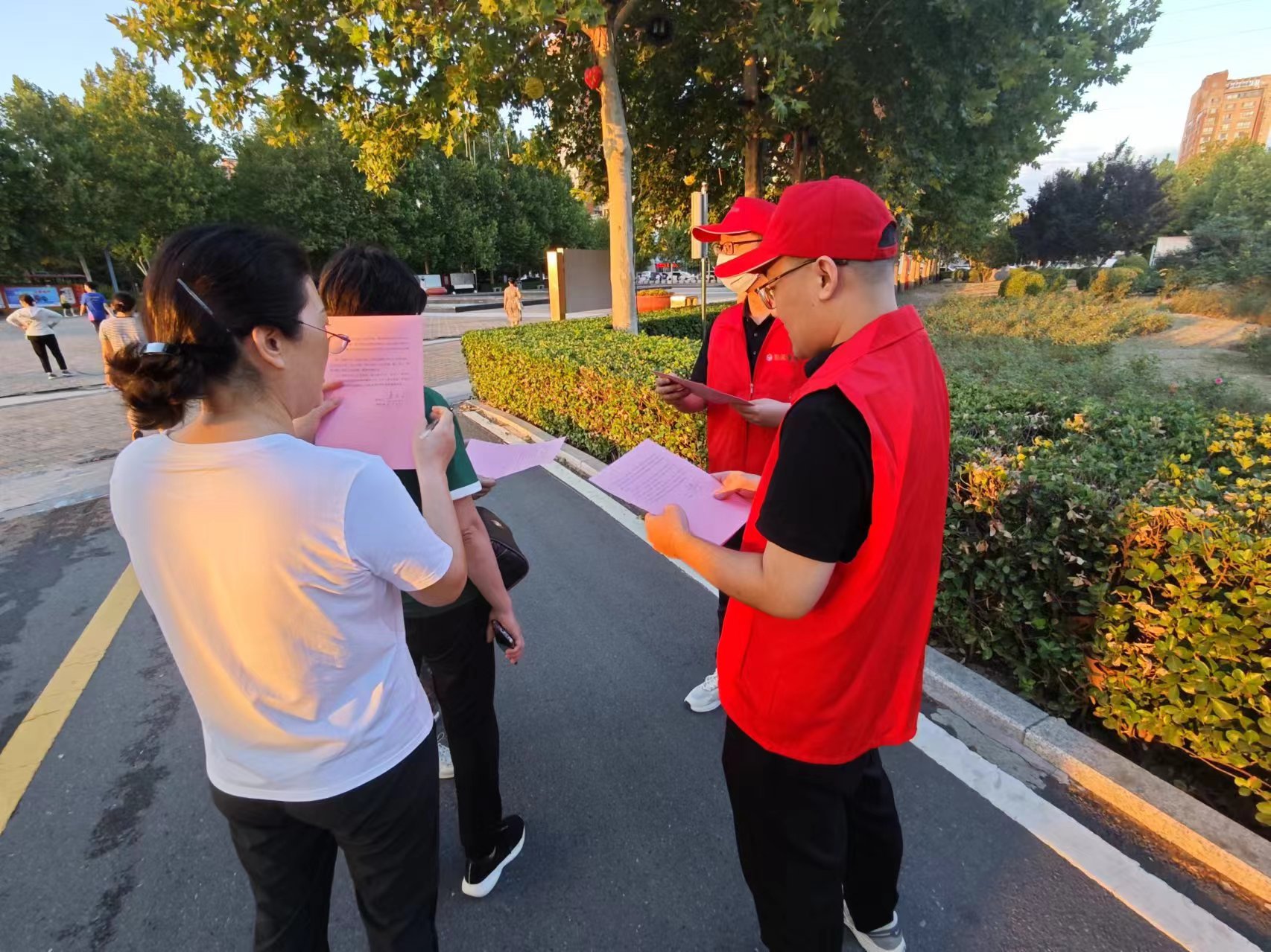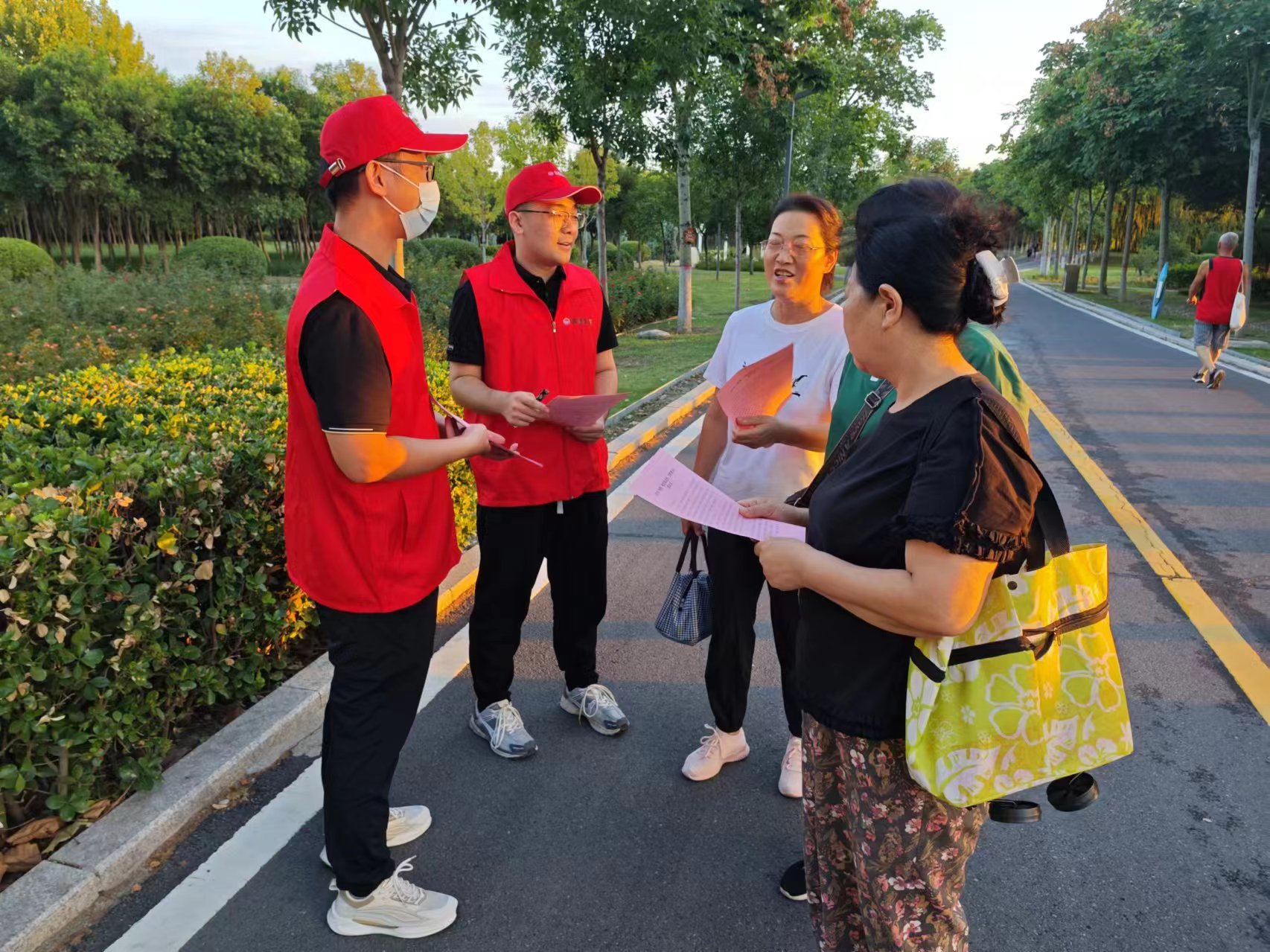 8月27日下午,市國資集團(tuán)組織志愿服務(wù)小組前往公園,宣傳“靜音廣場舞”、規(guī)范暴走團(tuán)、集體健步走等文明健康生活方式,并分發(fā)倡議書。